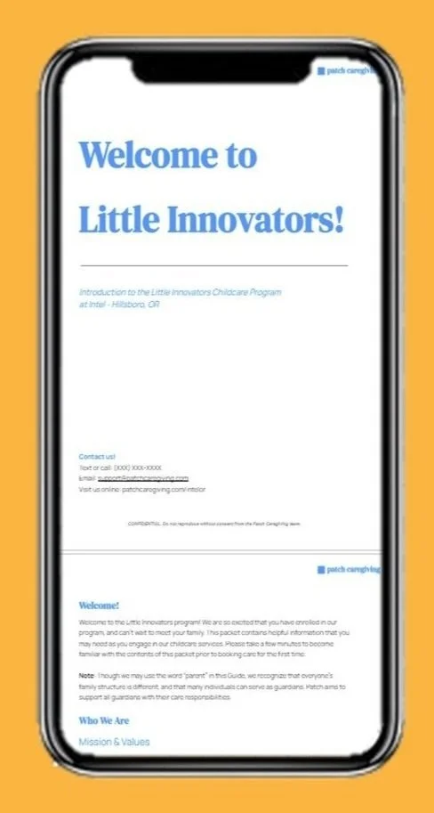 Thanks to Intel, this program is free to employees! Please note that Intel may withhold and report taxes on certain dependent care benefits received through Patch Caregiving. You can learn more about taxability by referring to the backup childcare program page.